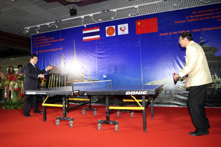 วันที่ 24 ก.ย. ที่รัฐสภา นายพรเพชร วิชิตชลชัย ประธานสภานิติบัญญัติแห่งชาติ (สนช.) เป็นประธานในพิธีเปิดงานฉลองครบรอบ 40 ปี ความสัมพันธ์ทางการทูตระหว่างประเทศไทยและสาธารณรัฐประชาชนจีน โดยนายหนิง ฟู่ขุย เอกอัคราชทูตสาธารณรัฐประชาชนจีน ประจำประเทศไทย เข้าร่วม โดยก่อนเริ่มพิธีเปิดงานได้มีการตีปิงปองระหว่างนายพรเพชรกับนายหนิง ฟุ่ขุย เพื่อเป็นการสัญลักษณ์ในการกระชับความสัมพันธ์ทางการทูตด้วย