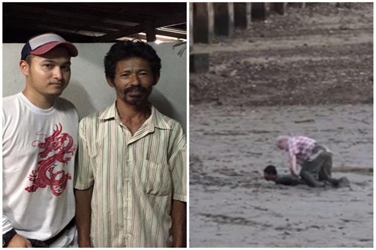ฮีโร่ตัวจริง!หนุ่มกระบี่ช่วยฝรั่งติดโคลนให้เหยียบหลังขึ้นฝั่ง