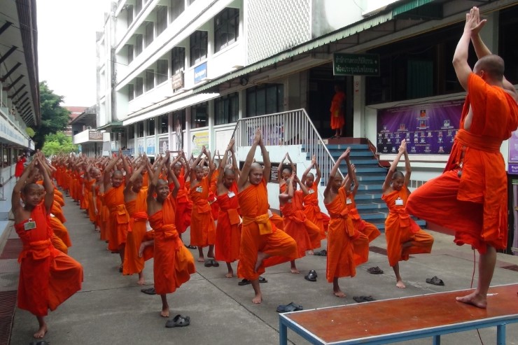 พระครูบวรเจติยารักษ์ ผู้อำนวยโรงเรียนนันทบุรีวิทยา พระปริยัติธรรม จ.น่าน และพระครูธเนศ ธนมงคโล พระครูสอนด้านสุขอนามัยจะนำพระและสามเณร จำนวน 272 รูป ออกกำลังกายที่ลานกิจกรรมของโรงเรียนในทุกเช้าด้วยการฝึกท่าโยคะต่างๆ ที่ปรับให้เหมาะสม เพื่อคลายหนาวในตอนเช้าก่อนเข้าห้องเรียน ป้องกันโรคไข้หวัด