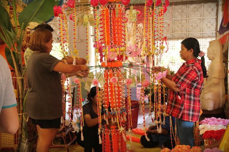 วัดทองเหลือจัดทำพวงมาลัยโบราณช่วงออกพรรษา
