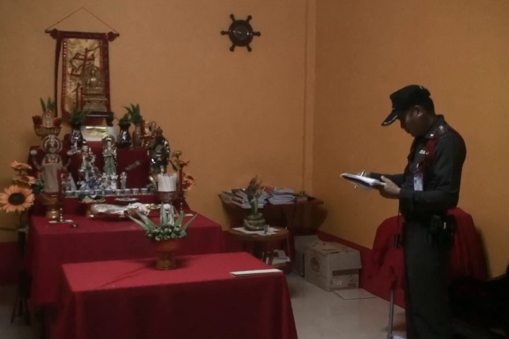 เมื่อวันที่ 5 พ.ย. พ.ต.อ.สมคิด ดำเกลี้ยง ผกก.สภ.กะปาง อ.ทุ่งสง จ.นครศรีธรรมราช ได้จับแจ้งคนร้ายบุกยิงเจ้าของศาลเจ้าพระแม่ทรงธรรม หมู่ 2 ต.เขาโร อ.ทุ่งสง เสียชีวิต จึงพร้อมชุดสอบสวน แพทย์ และเจ้าหน้าที่มูลนิธิธรรมรัศมีมณีรัตน์เข้าตรวจสอบ