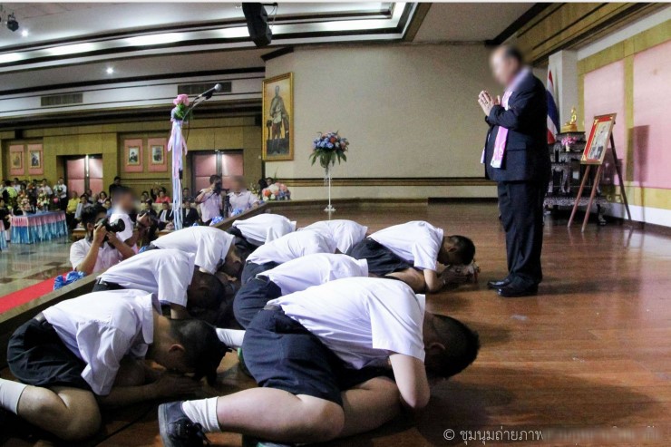 เหมาะสมหรือไม่?! รร.ชายล้วนชื่อดัง เกณฑ์นักเรียนกราบเท้าต้อนรับผู้อำนวยการคนใหม่