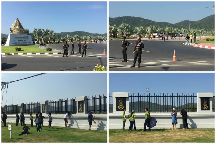 ผู้สื่อข่าวรายงานว่า เจ้าหน้าที่หน่วยงานด้านการรักษาความปลอดภัย ตำรวจ สภ.หัวหิน ,ทหารจากโรงเรียนนายสิบทหารบก และ ทหารมณฑลทหารบกที่ 15มีการวางกำลังคุมเข้มตลอดแนวรั้วอุทยานราชภักดิ์ พร้อมทั้งตรวจสอบบุคคลที่เดินทางผ่านเข้าออก