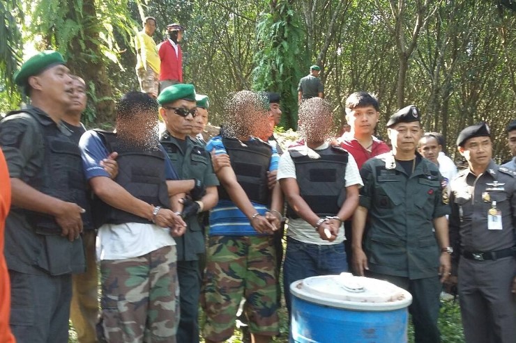 ชุมพร-ตำรวจคุม3ผู้ต้องหาร่วมกันฆ่ายัดถังลูกนักธุรกิจชื่อดังชุมพรทำแผนประกอบคำรับสารภาพ