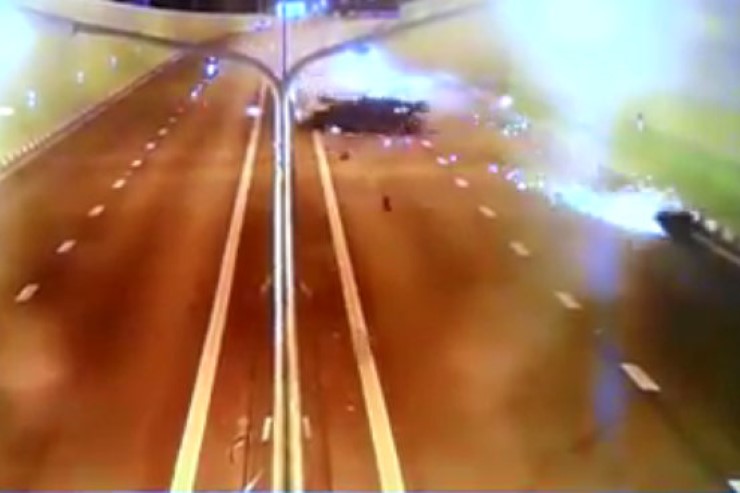 เมื่อวันที่ 14 ธ.ค. สมาชิกเฟซบุ๊กชื่อ Tawisap Wonghan เผยเเพร่คลิป "นาทีระทึกอุบัติเหตุทางรถยนต์" ความยาว 22 วินาทีเผยให้เห็นภาพจังหวะเข้าโค้งช่วงทางลอดอุโมงค์ของรถเก๋งคันหนึ่งที่วิ่งมาด้วยความเร็วสูง ก่อนเสียหลักพุ่งชนกระเเทกไหล่ทางทั้งสองฝั่ง ตัวรถหมุนสะบัดอย่างรุนเเรง สภาพรถเสียหายพังยับเยิน เครื่องยนต์หลุดลอดออกมาบนถนน อย่างไรก็ตามโชคยังดีที่ไม่มีผู้เสียชีวิตจากเหตุการณ์นี้
