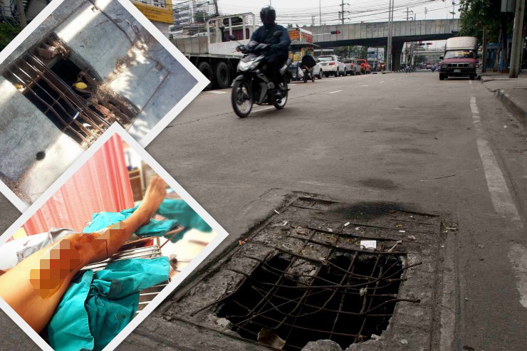 กลายเป็นภาพสยดสยอง ที่ไม่ควรเกิดขึ้นสำหรับคนเดินถนน ในเมืองกรุง หลังชายหนุ่มรายหนึ่ง ประสบอุบัติเหตุเดินตกท่อระบายน้ำที่ชำรุดในพื้นที่เขตจตุจักร จนได้รับบาดเจ็บ ถูกตะแกรงเหล็กบาดขาขวาเป็นแผลฉีกลึกขนาดใหญ่ ต้องเย็บถึง 100 เข็ม