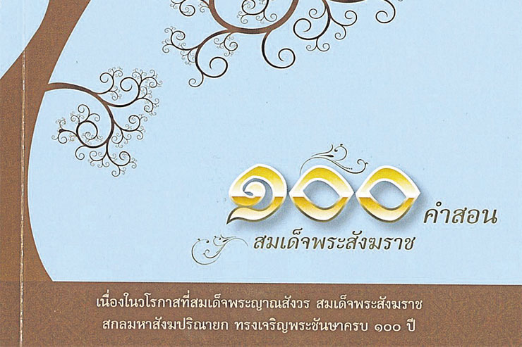 เพื่อความสะดวกแก่ท่านที่ต้องการเลือกหลักธรรมคำสอนของสมเด็จพระญาณสังวรมาปรับใช้ในชีวิตประจำวัน จึงแนะนำให้หาซื้อหนังสือ 100 คำสอนมาอ่าน หนังสือหนา 120 หน้า ขนาดพกพา พิมพ์จำนวน 5 แสนเล่ม เนื่องในวโรกาสที่สมเด็จพระญาณสังวร สมเด็จพระสังฆราช สกลมหาสังฆปริณายก ทรงเจริญพระชันษาครบ 100 ปี และจำหน่ายเพื่อนำรายได้จัดหาเครื่องมือแพทย์ประจำโรงพยาบาลพหลพลพยุหเสนา จ.กาญจนบุรี ท่านที่สนใจหาซื้อได้ที่มูลนิธิมหามกุฏฯ หน้าวัดบวรนิเวศวิหาร