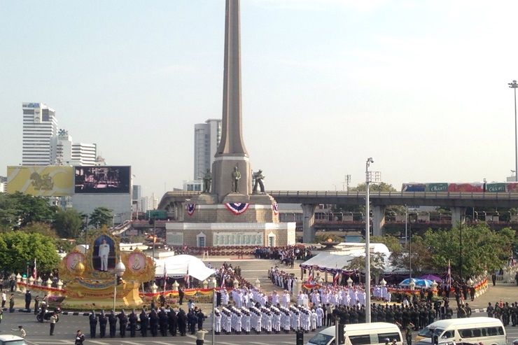 ขณะเดียวกันบริเวณโดยรอบอนุเสาวรีย์ชัยสมรภูมิ มีทหารคอยอำนวยความสะดวกด้านการจราจรและความปลอดภัย