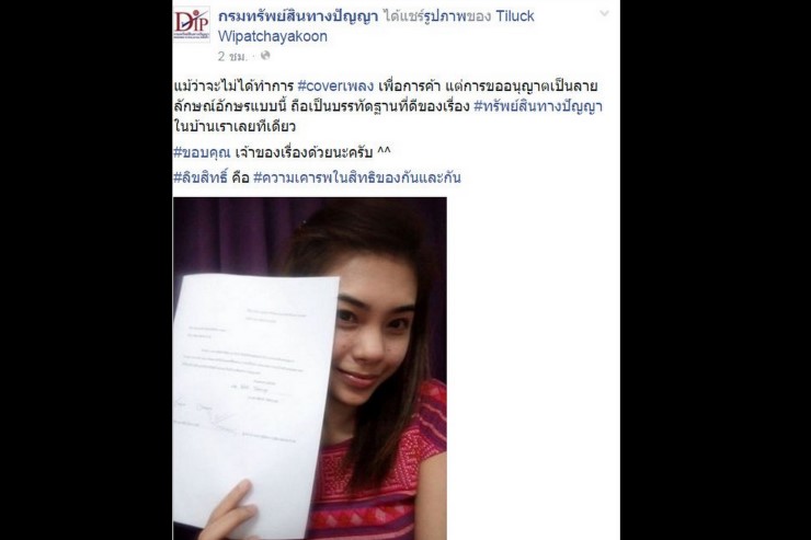 นักร้องสมัครเล่นโพสต์เล่าประสบการณ์ขออนุญาตคัฟเวอร์เพลงจากค่ายดัง กรมทรัพย์สินทางปัญญาชี้เป็นตัวอย่างที่ดี