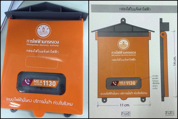 นายชาญ ปัทมะวิภาค ผู้อำนวยการฝ่ายสื่อสารองค์กร การไฟฟ้านครหลวง (กฟน.) เปิดเผยว่า กฟน. ได้ทดลองนำกล่องใส่ใบแจ้งค่าไฟฟ้าขนาด กว้าง 11 ซม.ยาว 14 ซม. หนา 1.2 ซม.เป็นกล่องขนาดเล็ก มาใช้กับผู้ใช้ไฟฟ้าประเภทจดหน่วยพร้อมแจ้ง สืบเนื่องจาก กรณีบ้านที่อยู่อาศัยที่ไม่มีกล่องไปรษณีย์เพื่อใส่ใบแจ้งค่าไฟฟ้า ที่เจ้าหน้าที่มาจดหน่วยการใช้ไฟฟ้าพร้อมแจ้งนั้น บางครั้งอาจเกิดการสูญหายจากกรณีลมพัด หรือกรณีอื่นๆ เนื่องจากเอกสารมีขนาดเล็ก กฟน. จึงแก้ปัญหาดังกล่าว โดยได้ดำเนินการจัดทำกล่องใส่เอกสารใบแจ้งค่าไฟฟ้าจำนวนหนึ่งให้กับผู้ใช้ไฟฟ้านำไปติดตั้งเพื่อเป็นการนำร่องทดลองการใช้งานจริง
