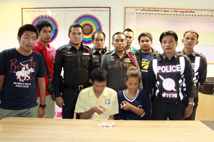 เมื่อวันที่18ก.พ.59 เวลา 00.30น. ร.ต.ท.ไชยณรงค์ ไชยอินทร์ รองสวป. สภ.เมืองพัทยา จับกุมนายภุชงค์ ลอยมั่ง อายุ 21 ปี สาวประเภทสอง และน.ส.วรรณวิภา ฉวีทอง อายุ 34 ปี พร้อมของกลางเป็นเงิน 500 บาท และยาเสพติดประเภทที่ 1 (ยาไอซ์) น้ำหนัก 0.45 กรัม สามารถจับกุมได้ที่หน้าห้องขัง สภ.เมืองพัทยา