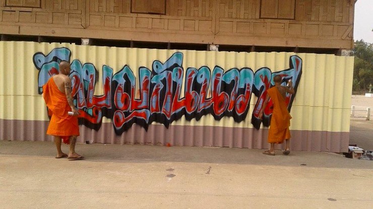 เมื่อวันที่ 24 ก.พ. โลกออนไลน์กำลังฮือฮาเเละวิพากษ์วิจารณ์ ภาพของพระภิกษุสงฆ์ขณะกำลังสร้างสรรค์งานศิลปะผ่านกำเเพง ในลักษณะ Graffiti Street ART