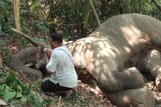 ระยอง-ช้างโทนเพศผู้อายุ 50 ปีถูกช้างป่าด้วยกันแทงใกล้หัวใจล้มทับตอไม้ คาดเกิดจากบาดแผลฉกรรจ์ติดเชื้อ
