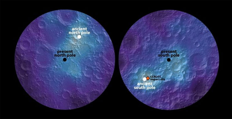 รูปแบบดังกล่าวแสดงว่าแกนหมุนของดวงจันทร์ในอดีตแตกต่างจากปัจจุบันอย่างน้อย 6 องศา หรือคิดเป็นระยะทางราว 200 กิโลเมตร และคาดว่าการเปลี่ยนแปลงนี้เกิดขึ้นในระยะเวลาราว 1,000 ล้านปี