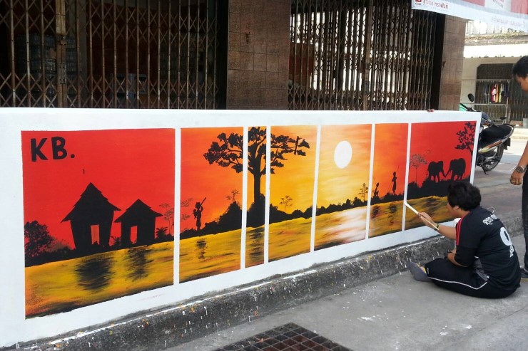 สำหรับนักศึกษาเหล่านี้เป็นนักศึกษาปี 1 ที่เรียนด้านการวาดรูป ศิลปกรรมออกแบบต่างๆ จำนวน 60 คน จะใช้เวลาในช่วงเย็นหลังเลิกเรียนมาเขียนภาพกันทุกวัน โดยมีพื้นที่รับผิดชอบเขียนภาพปล้องบ่อตั้งแต่แยกถนนปิติ จนถึงแยกถนนโป้ห้วยอุทิศ