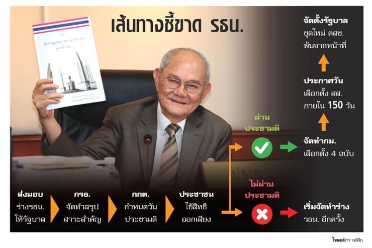ร่างรัฐธรรมนูญฉบับสมบูรณ์ที่จะนำไปสู่การประชามติโดยคณะกรรมการร่างรัฐธรรมนูญ (กรธ.) ได้ดำเนินการเสร็จสิ้นอย่างเป็นทางการแล้ว เมื่อวันที่ 29 มี.ค. ตามขั้นตอนต่อจากนี้ กรธ.จะส่งมอบร่างรัฐธรรมนูญให้กับคณะรัฐมนตรี (ครม.) สภานิติบัญญัติแห่งชาติ (สนช.) และคณะกรรมการการเลือกตั้ง (กกต.) เพื่อจัดให้มีการออกเสียงประชามติ
