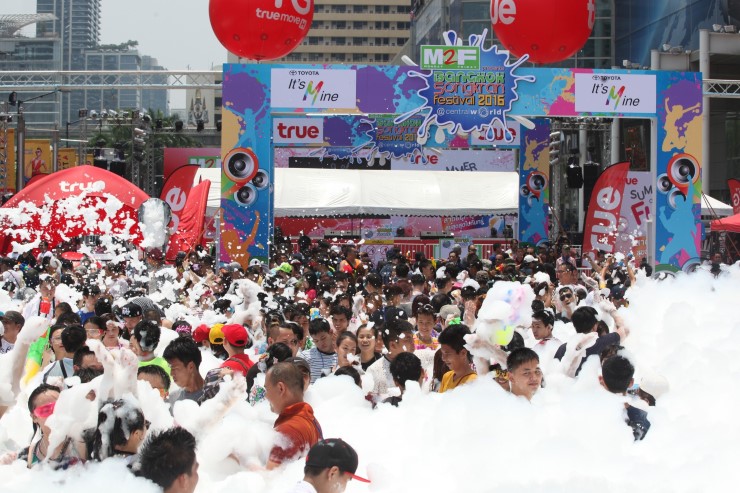 หนังสือพิมพ์ M2F จับมือกรุงเทพมหานคร และศูนย์การค้าเซ็นทรัลเวิลด์ ผนึกกำาลังพันธมิตรจัดงานอัศจรรย์สงกรานต์กลางกรุง M2F Presents Bangkok Songkran Festival 2016 @Central World ร่วมกับทรู คอร์ปอเรชั่น และโตโยต้า มอเตอร์ (ประเทศไทย) และพันธมิตรอีกหลายราย เนรมิตพื้นที่ด้านหน้าศูนย์การค้าเซ็นทรัลเวิลด์ ร่วมสืบสานประเพณีการเล่นน้ำสงกรานต์ที่เป็นเอกลักษณ์ประจำาชาติไทย พร้อมร่วมส่งเสริมการเล่นน้ำาสงกรานต์อย่างมีวัฒนธรรม เป็นสงกรานต์ที่ปลอดภัยไร้แอลกอฮอล์ และสร้างให้ลานด้านหน้า ศูนย์การค้าเซ็นทรัลเวิลด์ เป็นแลนด์มาร์กการเล่นน้ำสงกรานต์ที่ยิ่งใหญ่ที่สุดในกรุงเทพฯ