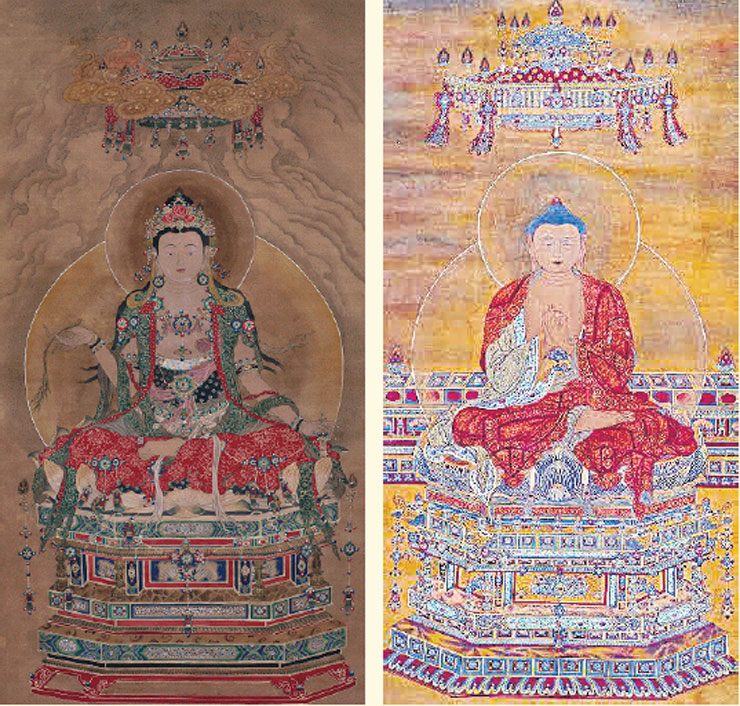 ความโดดเด่นอยู่ตรงการนำผลงานของศิลปินเอกของจีน “เจ้า ชิ่งเซิง” ซึ่งเป็นผลงานศิลปะเชิงอนุรักษ์พระบฏ หรือจิตรกรรมส่วยลู่ จำนวน 146 ภาพ จากวัดเป่าหนิง เมืองซูโจว อันเปรียบเสมือนสิ่งศักดิ์สิทธิ์ของวัดเป่าหนิง สร้างขึ้นโดยพระราชโองการของจักรพรรดิเทียนซุ่นแห่งราชวงศ์หมิง เมื่อกว่า 580 ปีมาแล้ว ปัจจุบันถูกเก็บรักษาโดยพิพิธภัณฑ์มณฑลซานซี และเป็นโบราณวัตถุระดับชาติชั้นหนึ่งของสาธารณรัฐประชาชนจีน