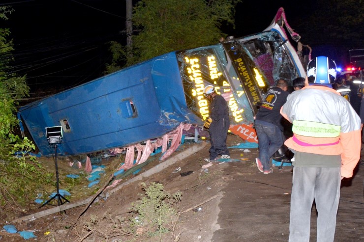 รถทัวร์กรุงเทพ-ชุมพรตกถนนพลิกคว่ำดับ 7 เจ็บ 25
