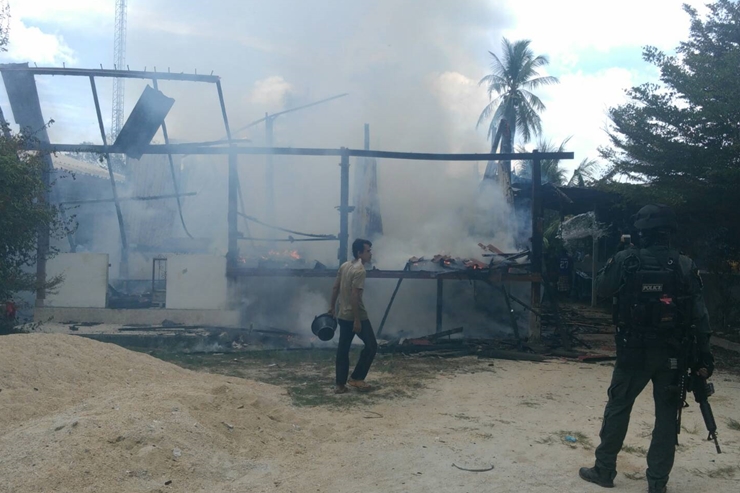 ไฟฟ้าลัดวงจรไหม้บ้านไม้เก่าที่ยะรังวอดทั้งหลัง