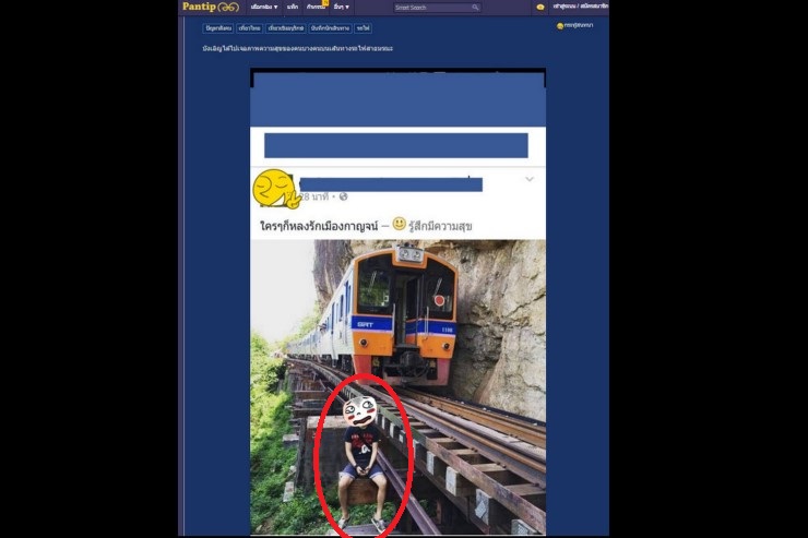 เมื่อวันที่ 4 มิ.ย. สมาชิกเว็บไซต์พันทิปดอทคอมชื่อ โคตรโหด_กระโดดกราบ ได้ตั้งกระทู้ชื่อ "สมควรไหม??ความสุขของคนบางคน บนเส้นทางรถไฟสายมรณะ" http://pantip.com/topic/35234715 เป็นภาพนักท่องเที่ยวชายคนหนึ่งกำลังนั่งถ่ายภาพอยู่ข้างรางรถไฟสายมรณะ โดยมีขบวนรถไฟแล่นผ่านมาใกล้ๆ