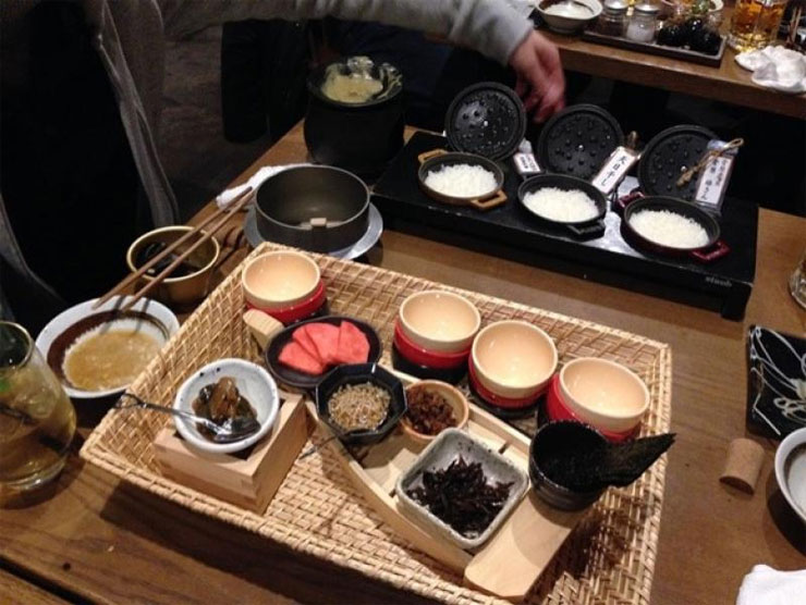 ที่ตื่นตาตื่นใจคือ ข้าวกับผักดองแบบไม่ธรรมดา เป็นโถข้าวขนาดย่อม 3 โถนึ่งมาร้อนๆ พร้อมถาดผักดอง 4-5 ชนิด และถ้วยอีก 12 ใบ ไว้ให้จับคู่ทานข้าวกับผักดองแต่ละชนิด กว่าจะทานหมดนี่พุงแทบปลิ้นเพราะอร่อยทุกคู่ ยิ่งได้จานสุดท้ายแฮมอบมาเพิ่มรสชาติยิ่งสุดยอดเข้าไปใหญ่ ปิดท้ายด้วยของหวานที่อลังการมาก มาเป็นกล่องทอง เปิดออกมามีของหวานหลายถ้วยอบอวลด้วยกลุ่มควันจากน้ำแข็งแห้ง มีทั้งพุดดิ้ง สตรอเบอร์รี่ โมจิ และช็อกโกแลต เป็นเมนูปิดมื้อส่งท้ายได้อย่างน่าประทับใจ