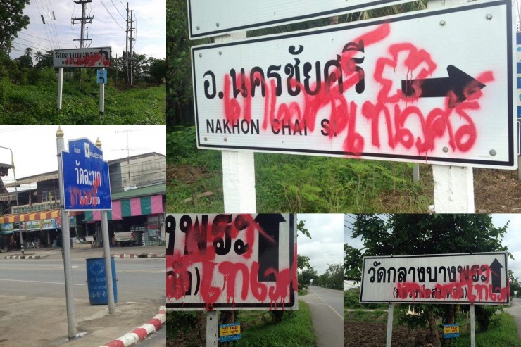 ประกาศรางวัลนำจับ 1 หมื่น ล่า "คนมือบอน" พ่นสีลงป้ายบอกทางสาธารณะ หลายจุดใน อ.นครชัยศรี จ.นครปฐม