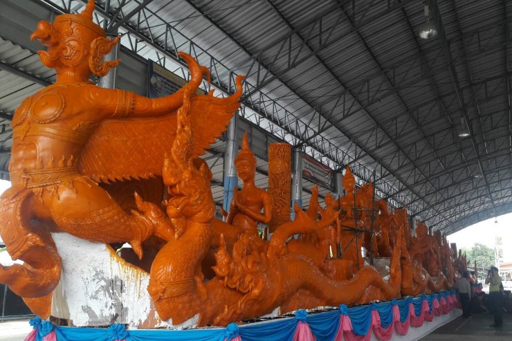 ภาพพุทธประวัติบนขี้ผึ้ง อลังการแห่เทียนเมืองอุบลฯ