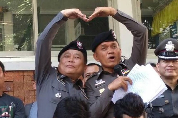 ผู้สื่อข่าวรายงานว่าภายหลังการแถลงข่าวเสร็จ พล.ต.ท.ศานิตย์ กล่าวว่า"หาเจอคู่อริให้ทำสัญลักษณ์ซารางเฮโย (ฉันรักเธอ/ภาษาเกาหลี)" ซึ่งทั้งพล.ต.ท.ศานิตย์และพล.ต.ต.เจริญ ศรีศศลักษณ์ ผบก.น.2 ทำท่าเป็นสัญลักษณ์รูปหัวใจให้สื่อมวลชนได้บันทึกภาพด้วย