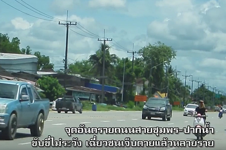 ร่วมด้วยช่วยกันจังหวัดชุมพรจุดเสี่ยงถนนสายชุมพร-ปากน้ำ ขับขี่ไม่ระวังเฉี่ยวชนเจ็บตายหลายราย