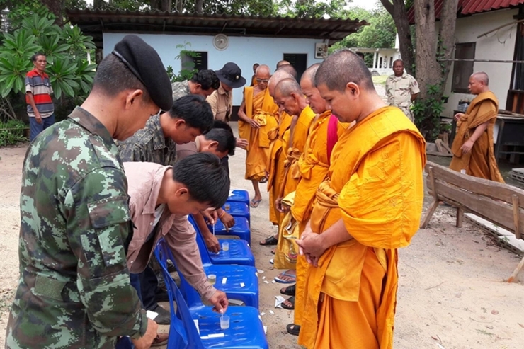 เจ้าหน้าที่จับ150พระเณรตรวจฉี่พบสีม่วง7รูปจับสึกพาไปบำบัด