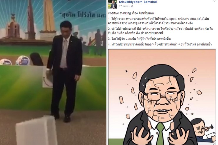 หลังจาก นายสมชัย ศรีสุทธิยากร กรรมการการเลือกตั้ง (กกต.) ด้านกิจการบริหารงานเลือกตั้งได้ทดสอบความแข็งแรงของหีบบัตรลงคะแนนแบบใหม่ที่ผลิตจากพลาสติกใส โดยได้โยนทดสอบระหว่างการแถลงข่าวเมื่อวันที่ 2 ส.ค. แต่หีบบัตรลงคะแนนเกิดแตกเสียหาย ซึ่งคลิปวิดีโอขณะที่นายสมชัยโยนหีบบัตรลงคะแนนได้ถูกผู้คนแชร์ออกไปอย่างกว้างขวางบนสังคมออนไลน์