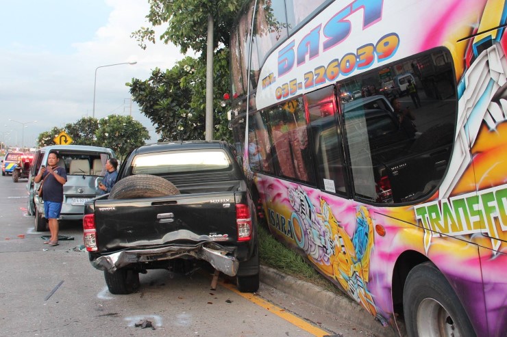 บัสรับ-ส่งคนงานซิ่งชนกระจุย8คันบาดเจ็บหลายราย