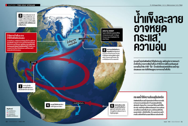 การจะทำให้กระแสน้ำอุ่นกัลฟ์สตรีมหยุดลงอย่างสิ้นเชิงนั้นอาจต้องใช้มากกว่าขัดขวางการจมตัวลงของน้ำ แต่หากสาขาของกระแสน้ำอุ่นกัลฟ์สตรีมในมหาสมุทรแอตแลนติกเหนือไม่แข็งแรงเหมือนเดิม ชีวิตในยุโรปเหนือก็จะเผชิญกับความเย็นในท่ามกลางภาวะโลกร้อน การศึกษาใหม่โดย สเตฟาน ราห์มสตอร์ฟ แห่งสถาบันวิจัยผลกระทบทางภูมิอากาศแห่งเมืองพอทสดัม (Potsdam Institute for Climate Impact Research) ในเยอรมนีและทีมงาน บ่งชี้ว่า กระแสน้ำในมหาสมุทรแถบแอตแลนติกเหนืออ่อนแรงที่สุดในรอบ 1,000 ปี