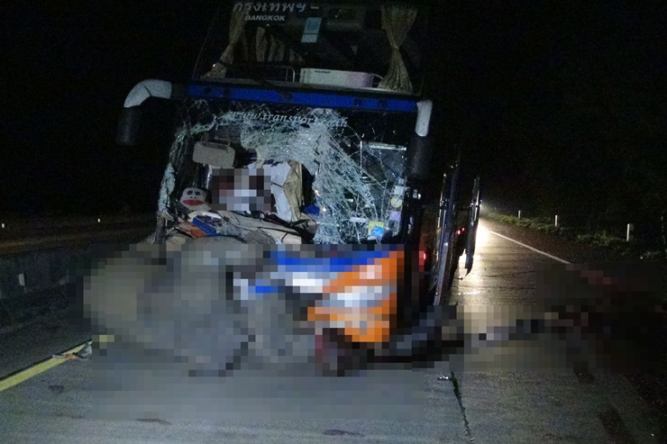 รถทัวร์ กทม.-เชียงใหม่ชนช้างป่า ที่หลุดออกมาเดินบนถนน จนตายคาที่ ขณะที่ คนขับถูกอัดก๊อปปี้ บาดเจ็บสาหัส