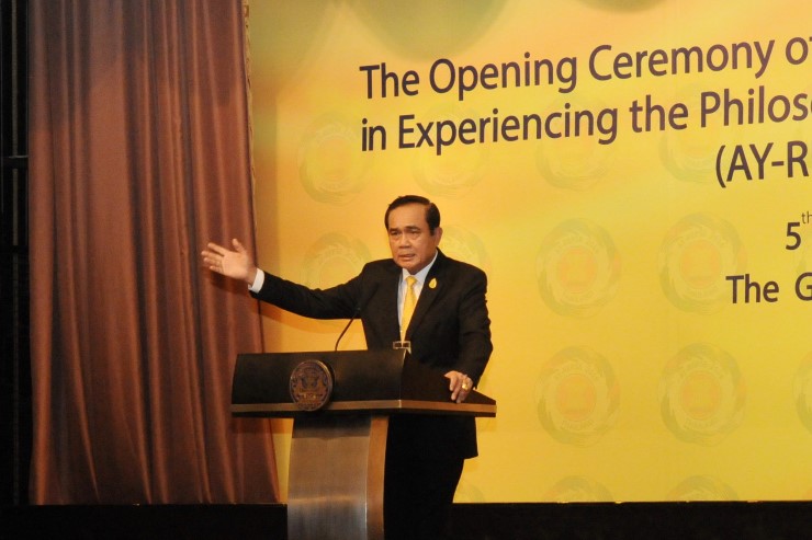 นายกฯ กล่าวว่า ขอให้นำปรัชญาเศรษฐกิจพอเพียง จากประเทศไทยไปประยุกต์ใช้ได้อย่างไร เพื่อให้เกิดการเรียนรู้ ศึกษา ทำต่อเนื่องให้เกิดความเคยชิน ไม่ต้องบังคับไม่ต้องมีกฎหมาย เพราะโลกใบนี้เราใช้กฎหมายกันมามากพอแล้ว และเกิดความขัดแย้งพอสมควร แต่เราต้องทำให้ประชาชนทุกคนมีจิตสำนึกว่าทำอย่างไรให้ประเทศชาติเกิดความสงบ ปลอดภัย โดยไม่ได้มองแค่ตัวเอง แต่ต้องนึกถึงคนอื่น ขยายออกไปเรื่อยๆ จนเกิดความยั่งยืน อย่าให้การมาพบปะกันครั้งนี้เป็นเพียงการเสียเวลาที่เดินทางไกลมา ตนไม่ต้องการภาพ หรือเพียงพิธีกรรมอะไร แต่ตนต้องการสาระในการประชุม พบปะ
