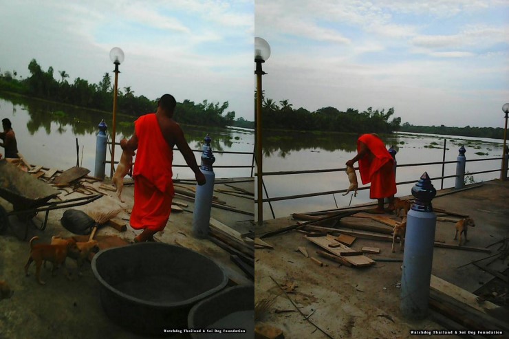 วิจารณ์สนั่น!ภาพเจ้าอาวาสวัดหัวไทร จ.ฉะเชิงเทราโยนลูกหมาลงแม่น้ำบางปะกง อ้างแค่อาบน้ำกำจัดเห็บหมัด