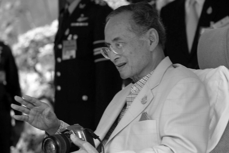 ภาพที่คนไทยพบเห็นเสมอคือ พระบาทสมเด็จพระเจ้าอยู่หัว ทรงแผนที่กับดินสอในพระหัตถ์ พระศอคล้องด้วยกล้องถ่ายรูป และวิทยุสื่อสารในกระเป๋าฉลองพระองค์ ทรงทรุดพระวรกายประทับพื้นดินแวดล้อมด้วยชาวบ้าน มีพระราชปฏิสันถารถึงทุกข์สุขอย่างใกล้ชิดด้วยพระพักตร์แช่มชื่น แต่เปียกชุ่มไปด้วยพระเสโท