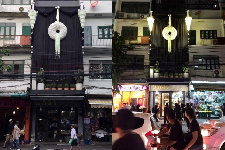 สมาชิกเฟซบุ๊กชื่อ napasorn ได้โพสต์ภาพพวงมาลัยขนาดยักษ์ที่ทำจากดอกไม้สีขาวประดับประดาไว้เหนือประตูร้านขายดอกไม้ชื่อ "นภสร" ถนนจักรเพชร (ปากคลองตลาด) แขวงบูรพาภิรมย์ เขตพระนคร กรุงเทพฯ ดึงดูดความสนใจประชาชนที่สัญจรผ่านไปมาเป็นอย่างมาก พร้อมระบุข้อความว่า