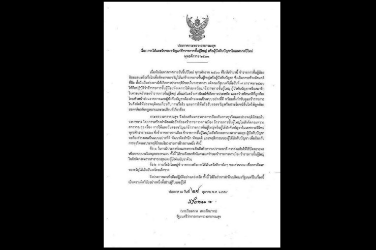 เมื่อวันที่ 28 ต.ค. กระทรวงสาธารณสุข เผยแพร่ประกาศเรื่อง"การรับและการให้ของขวัญแก่ข้าราชการชั้นผู้ใหญ่ หรือผู้บังคับบัญชาในเทศกาลปีใหม่ 2560" ระบุว่า จากมติคณะรัฐมนตรีวันที่ 7 มกราคม 2540 ให้ข้าราชการชั้นผู้น้อยงดการให้ของขวัญแก่ข้าราชการชั้นผู้ใหญ่ ผู้บังคับบัญชา หรือสมาชิกในครอบครัวของข้าราชการชั้นผู้ใหญ่ เพื่อเสริมสร้างค่านิยมให้เกิดการประหยัด โดยหัวหน้าส่วนราชการควรประพฤติตนเป็นตัวอย่างที่ดีและกำชับให้ผู้ใต้บังคับบัญชาปฏิบัติให้ถูกต้อง