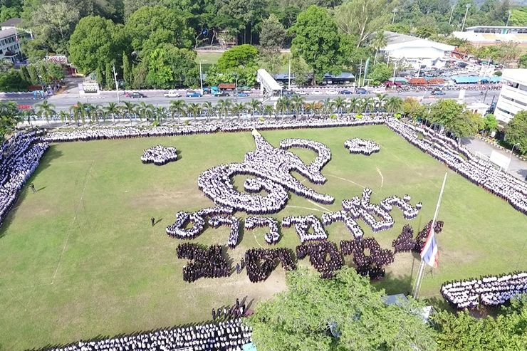 นครศรีธรรมราช-คนอาชีวะนับหมื่นร่วมแปรอักษรรูปเลขเก้าไทยและองค์พระบรมธาตุเจดีย์แสดงความอาลัยในหลวงรัชกาลที่9