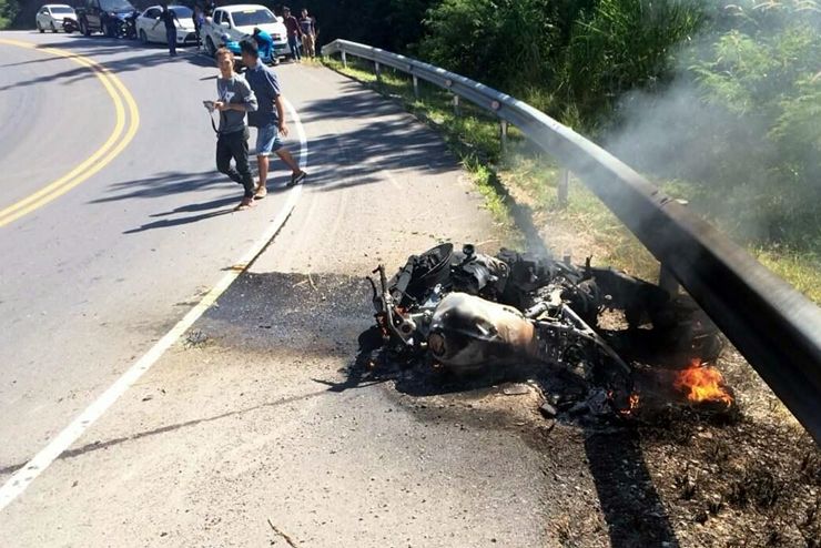 เพชรบูรณ์-หนุ่ม20ควบบิ๊กไบค์ขึ้นเขาค้อหลุดโค้งชนราวกั้นริมถนนไฟลุกท่วมเสียหายทั้งคัน