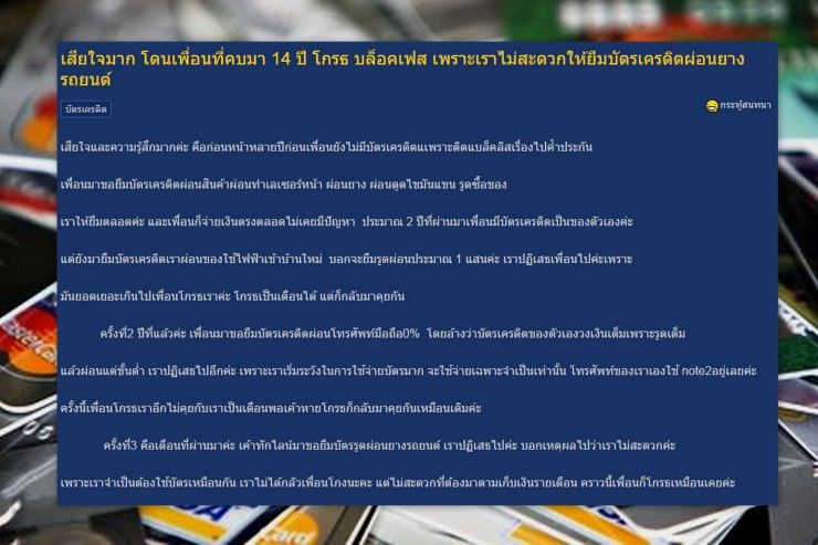 เเชร์สนั่น! สาวโพสต์เรื่องปวดใจ เสียเพื่อนรักเพราะไม่ให้ยืมบัตรเครดิต