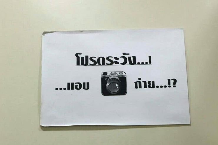 ห้องน้ำหญิงในห้องสมุดรัฐสภาไม่ปลอดภัยมีการติดป้ายเตือนให้ระวังแอบถ่าย