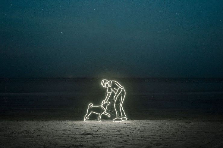 หนุ่มไอเดียบรรเจิด สร้างงานศิลปะไฟนีออนดัดเป็นพระบรมฉายาลักษณธในหลวงรัชกาลที่ 9 กับคุณทองแดง นำไปตั้งที่ชายทะเลหัวหิน