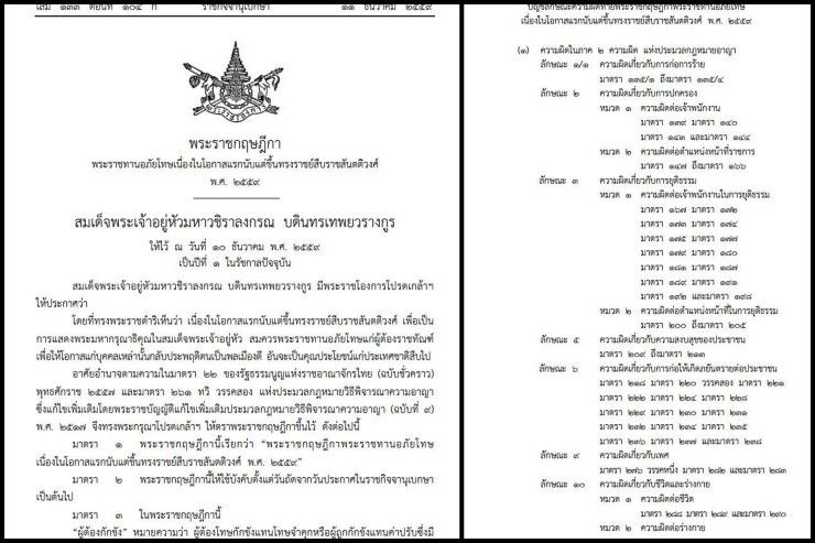 ราชกิจจาเผยแพร่พระราชกฤษฎีกา พระราชทานอภัยโทษเนื่องในโอกาสแรกนับแต่ขึ้นทรงราชย์สืบราชสันตติวงศ์ พ.ศ. 2559