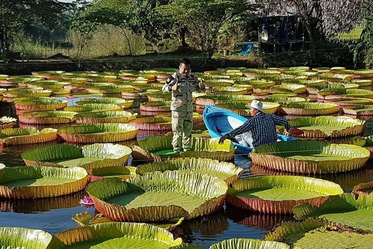 พิษณุโลก-นายอำเภอเมืองพิษณุโลกทดลองยืนบนใบบัวยักษ์ เตรียมพัฒนาเป็นแหล่งท่องเที่ยวเชิงเกษตร
