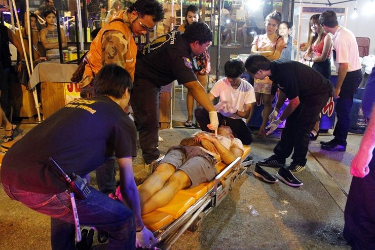 เมื่อวันที่22ธ.ค.59 เวลา 03.00น. เจ้าหน้าที่ตำรวจ สภ.เมืองพัทยา รุดไปตรวจสอบเหตุนักท่องเที่ยวถูกทำร้ายร่างกายได้รับบาดเจ็บสาหัส หน้าเร็กเก้ ร็อค แอนด์ โซล บาร์ ภายในโครงการถนนวอล์กกิ้ง สตรีท พัทยาใต้ พบผู้บาดเจ็บยังไม่ทราบสัญชาติมีบาดแผลที่ศีรษะ ตาข้างซ้ายปูดบวม บนใบหน้าเขียวช้ำ ริมฝีปากยังมีแผลฉีกขาด ตามใบหน้าและเสื้อเปียกชุ่มไปด้วยเลือด นอนหมดสติไม่สามารถให้การได้ ทำการปฐมพยาบาลเบื้องต้นก่อนนำตัวส่งโรงพยาบาลบางละมุง