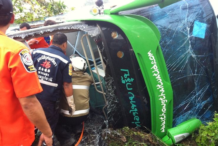 รถทัวร์ทัศนศึกษาพลิกคว่ำดับ1สาหัส4