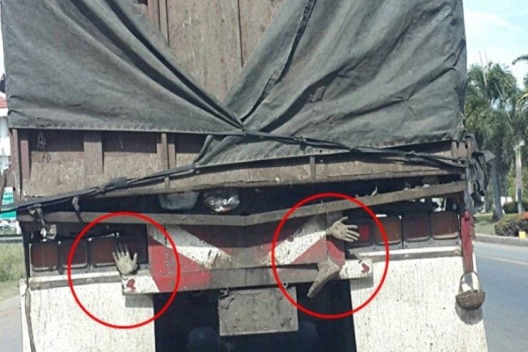 ขนส่งสั่งปรับรถบรรทุกนำตุ๊กตาชิ้นส่วนมือติดท้ายรถทำคนตกใจ
